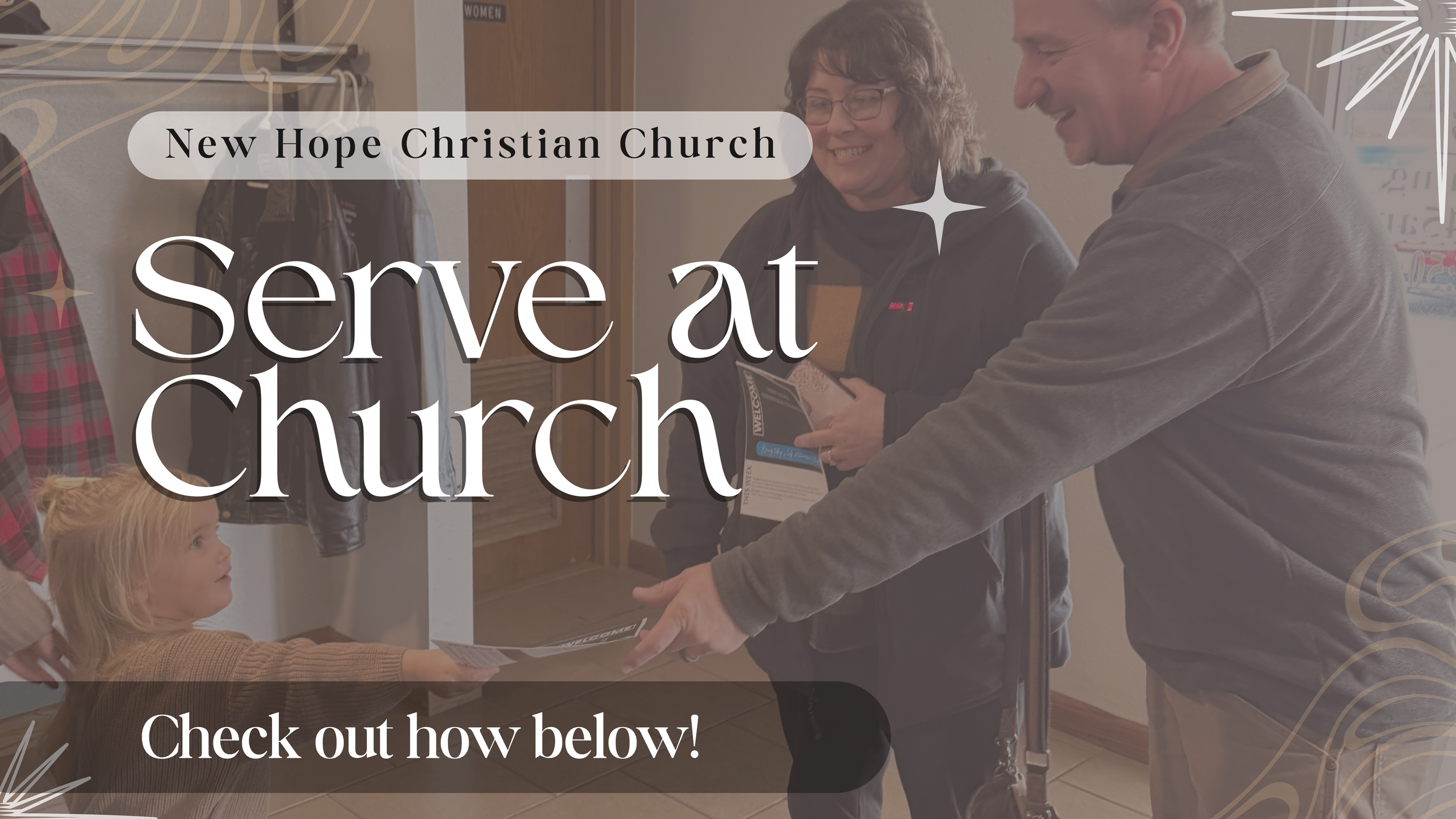 Serving at New Hope Christian Church is a meaningful way to grow in your faith, build relationships, and make a lasting impact. Whether you enjoy greeting on Sunday mornings, helping behind the scenes, working with kids or youth, or supporting worship, every role matters and helps create a welcoming place for all.